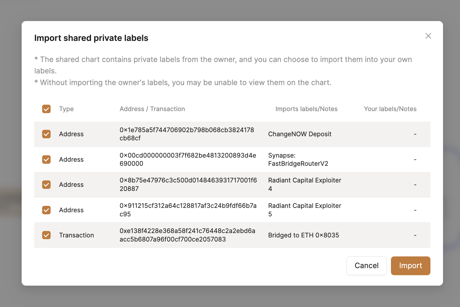 En général, le processus de déverrouillage est fluide, mais parfois vous pouvez rencontrer une invite vous demandant si vous souhaitez conserver certaines des balises privées du partageur. Si vous êtes un utilisateur expérimenté de MetaSleuth, vous pourriez vouloir considérer quelles balises sont précieuses à conserver. Si vous êtes un débutant, sélectionnez simplement "Importer" !