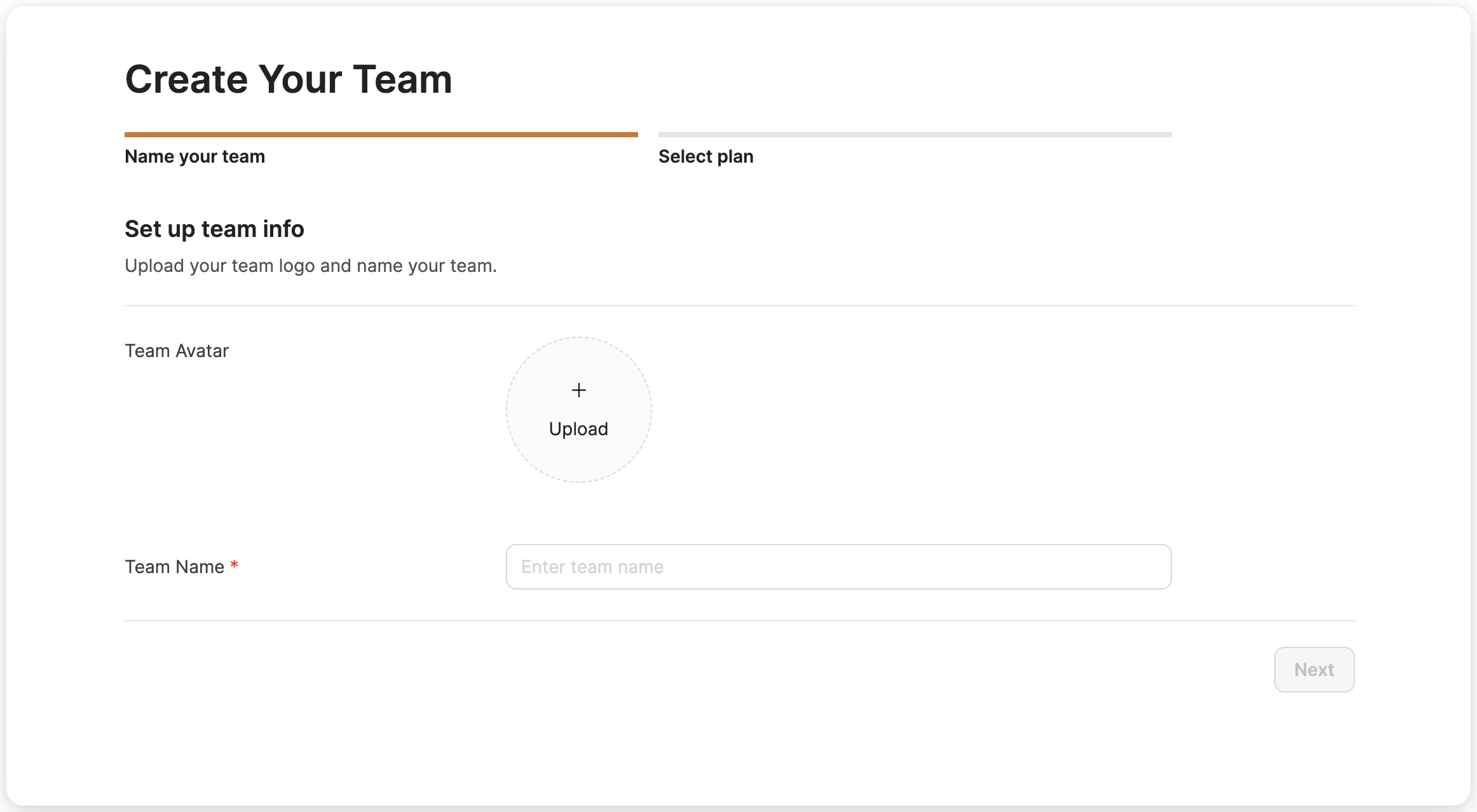 Cliquez sur 'Créer une nouvelle équipe', configurez les informations de votre équipe et sélectionnez un plan pour commencer.