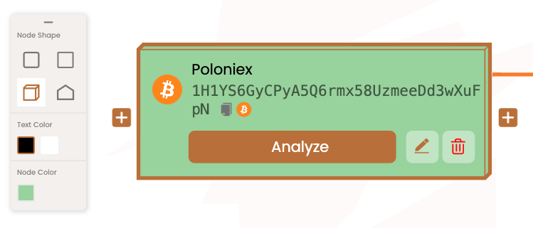 Нажатие на узел адреса откроет редактор формы, связанный с этим узлом, позволяя вам редактировать его форму, цвет текста и цвет узла.