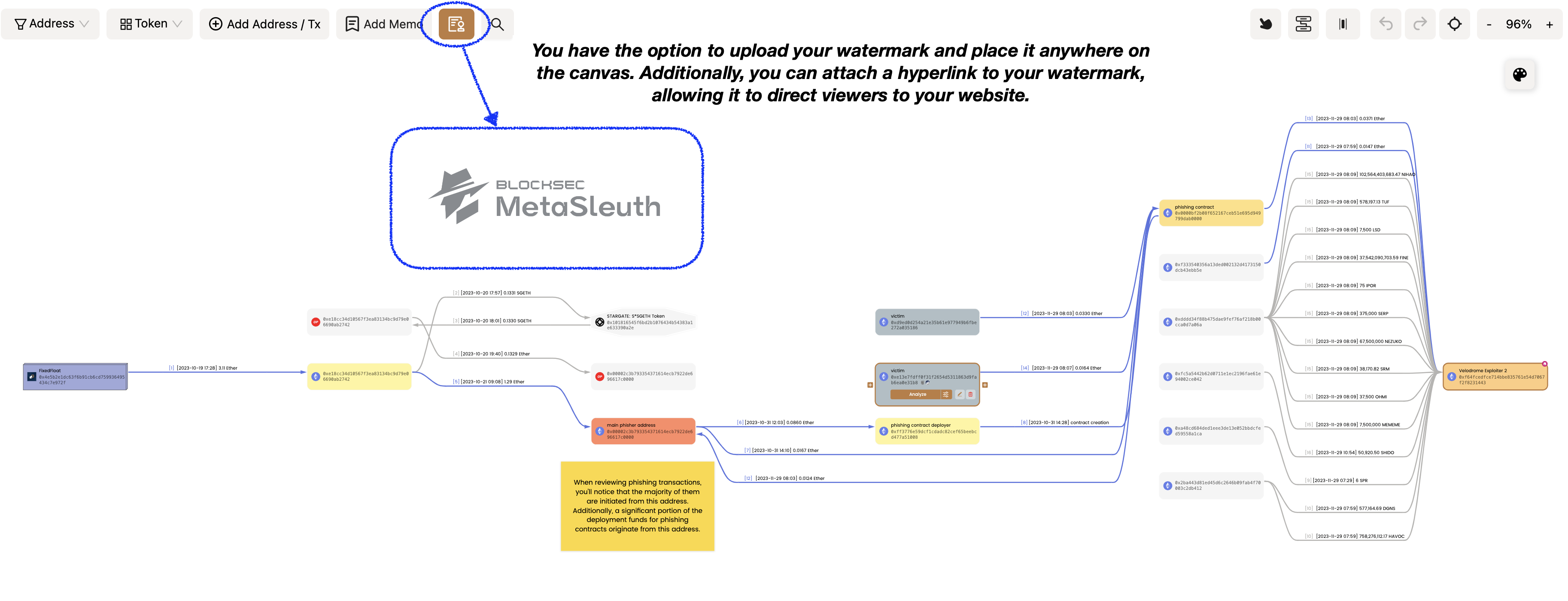 У вас есть возможность загрузить свой водяной знак и разместить его в любом месте на холсте. Кроме того, вы можете прикрепить к своему водяному знаку гиперссылку, позволяя направлять зрителей на свой вебсайт.