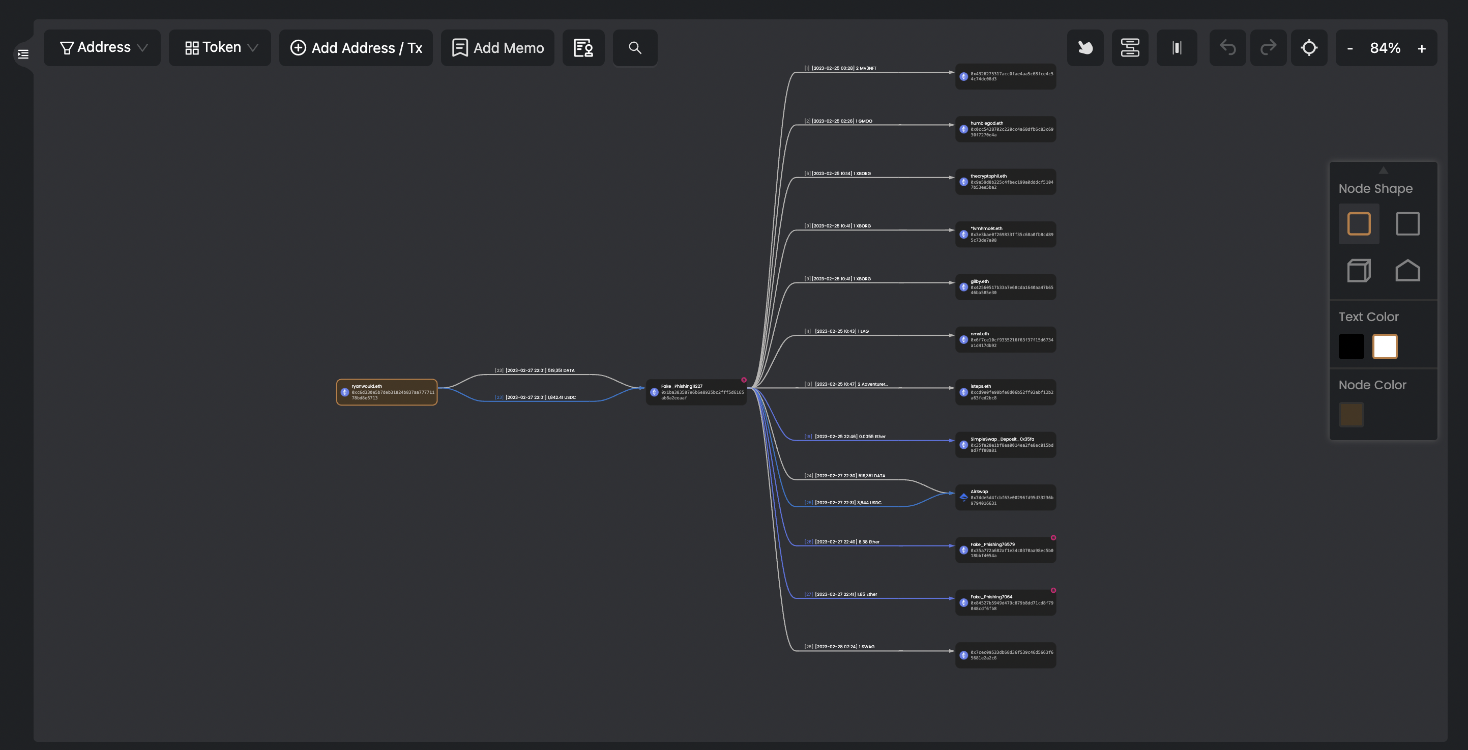 太好了！Metasleuth.io 快速生成了 2023 年 2 月 25 日和 2023 年 2 月 28 日之間所有流出資金流的可視化圖表。多虧了這個功能，我們節省了大量數據篩選時間。
